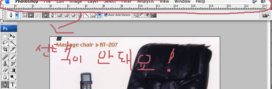 한글시스템안의 프리퍼런스폴더에서 포토샵관련 프리퍼런스폴더 삭제후 다시 프로그램 실행해보세요.. +++++++++++++++++++++++++++++++++++++++++ "맥사이트(A/S점/복구)"아이디 누르고 (자기소개)클릭후 내용을 참조하세요..